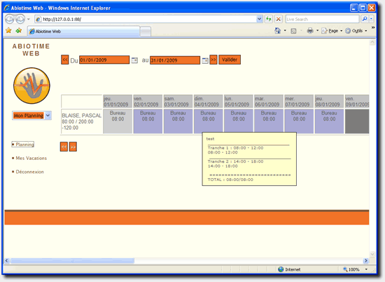 Grâce à ce planning, l'utilisateur peut savoir son temps de travail réalisé sur la période.